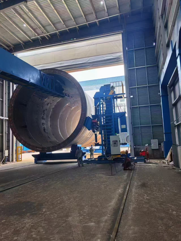 1. 工件就位:塔筒通過吊裝設備放置在輸送輥道上,進入拋丸室后,兩端支撐裝置固定并啟動旋轉(zhuǎn)。